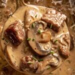 - Finish stroganoff sauce: Once beef is tender, stir in the sautéed mushrooms and full-fat sour cream into the slow cooker or pot. Heat gently until warmed through—do not boil to prevent sour cream from curdling.