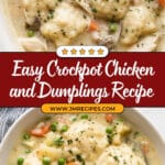 This Crockpot Chicken and Dumplings recipe transforms a classic comfort food into an easy slow cooker meal. Tender chicken breasts are slow-cooked with hearty vegetables like carrots, celery, and potatoes in a flavorful broth. Fluffy homemade dumplings made from scratch finish the dish, simmering in a creamy, thickened gravy for the perfect cozy dinner.