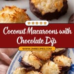 Deliciously chewy and sweet Coconut Macaroons made with shredded coconut, sweetened condensed milk, and egg whites, then dipped in rich semi-sweet chocolate for the perfect indulgent treat. These easy-to-make cookies are lightly golden and perfect for chocolate lovers looking for a quick homemade dessert.