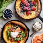 This Dutch Baby Pancake recipe is a delightful and impressive skillet pancake that’s light, fluffy, and perfectly puffed. Made with simple ingredients like eggs, flour, milk, and a hint of lemon zest, this breakfast favorite is easy to prepare and bakes to golden perfection in the oven. Serve it with confectioners’ sugar and your choice of fresh berries, whipped cream, maple syrup, or strawberry sauce for a delicious start to your day.