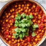 Can I make this recipe in a slow cooker?Yes, you can! Start by sautéing the onions, garlic, and spices on the stove, then transfer everything to your slow cooker along with the tomatoes, chickpeas, and water. Cook on low for 6-8 hours or on high for 3-4 hours for tender, flavorful results.