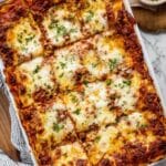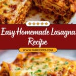 This easy homemade lasagna features layers of tender lasagna noodles, a rich meat sauce with ground beef and Italian sausage, and a creamy ricotta cheese mixture, all topped off with melted mozzarella and Parmesan for a hearty, flavorful Italian classic that’s perfect for family dinners.