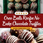 - Garnish: While the chocolate is still wet, add sprinkles or sift Oreo crumbs on top if desired. Drizzle additional melted chocolate over the truffles for decoration if you like.