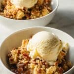 - Serve warm with vanilla ice cream and caramel drizzle to elevate the flavors and add creaminess.