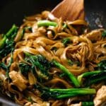 While traditional Pad See Ew uses wide flat rice noodles (Sen Yai), you can use dried wide rice stick noodles or even fresh flat rice noodles. Avoid thin rice vermicelli or egg noodles as they don’t have the right texture. The key is finding wide noodles that can soak up the sauce and hold up to stir-frying.