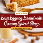 - The creamy eggnog glaze not only adds sweetness but keeps the bread moist.