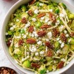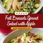 This Fall Brussels Sprout Salad with apple, pecans, and blue cheese is a vibrant and crunchy side dish perfect for autumn. The combination of shredded Brussels sprouts, sweet honey crisp apple, toasted pecans, and tangy blue cheese dressed with a simple Dijon and balsamic vinaigrette makes a flavorful and festive salad that pairs wonderfully with roasted meats or as part of a holiday meal.