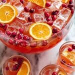 Scoop the punch over ice in your glasses, then garnish with more orange slices, cranberries, and a sprig of fresh rosemary to create a stunning presentation. Pro tip: I like to freeze some cranberry and pomegranate seeds in ice cubes for extra festive flair that doesn’t water down the punch.