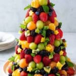 Create a festive and healthy Fruit Christmas Tree centerpiece using a variety of fresh fruits such as pineapple, pear, strawberries, kiwi, grapes, and more. This vibrant and easy-to-assemble recipe is perfect for holiday parties and a fun, kid-friendly treat that adds color and flavor to your celebrations.