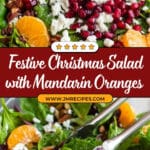 A festive and refreshing Christmas Salad featuring mixed spring greens, juicy orange segments, tangy pomegranate seeds, creamy feta cheese, and crunchy candied pecans, all tossed in a sweet and tangy homemade dressing. This easy-to-make salad is a perfect colorful addition to any holiday meal.