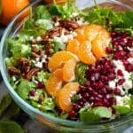 A festive and refreshing Christmas Salad featuring mixed spring greens, juicy orange segments, tangy pomegranate seeds, creamy feta cheese, and crunchy candied pecans, all tossed in a sweet and tangy homemade dressing. This easy-to-make salad is a perfect colorful addition to any holiday meal.