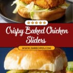 - Assemble Sliders: Spread the chilled sriracha aioli on both the top and bottom buns. On the bottom bun, add a layer of shredded lettuce, followed by a piece of the baked fried chicken and 2 dill pickle slices. Top with the bun and serve immediately.