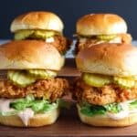 These Fried Chicken Sliders are a delicious and crispy treat, made by coating juicy chicken thighs in a crunchy cornflake crust and baking them to golden perfection. Served on soft Hawaiian rolls with a spicy sriracha aioli, shredded lettuce, and tangy dill pickles, these sliders are perfect for a flavorful appetizer or a fun meal.