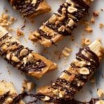 - Assemble the Snickers Bites: Spread approximately 1 tablespoon of peanut butter over each banana slice. Optional: drizzle caramel over the peanut butter layer for extra sweetness. Sprinkle chopped peanuts on top of the peanut butter (and caramel if used). Drizzle the melted chocolate over each slice, then sprinkle additional chopped peanuts on top for added crunch.