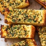 Remove your bread from the oven and let it cool slightly on a cutting board. Use a serrated knife to slice it into individual pieces. Serve it straight away – the warm garlic butter, crisp edges, and cheesy herbs make every bite memorable!