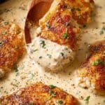 This Garlic Parmesan Chicken recipe features tender, juicy chicken breasts cooked in a rich and creamy garlic parmesan sauce. Coated with a seasoned cornflour mixture and pan-fried to golden perfection, the chicken is then simmered in a flavorful sauce made with garlic, onions, chicken stock, cream, lemon juice, and parmesan cheese. Perfectly balanced with savory and tangy notes, this dish makes a comforting and elegant meal that pairs wonderfully with mashed potatoes, green beans, or your favorite sides.
