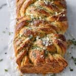 I’ve frozen the entire loaf and also individual pull-apart pieces with great results—just wrap tightly in foil and place in a freezer-safe bag. When you want to eat it, thaw overnight in the fridge and warm in the oven; the bread pulls apart like fresh!
