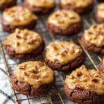 Delight in the rich flavors of German Chocolate Cookies, combining tender chocolate cookie bases topped with a luscious coconut-pecan filling reminiscent of the classic German chocolate cake. These chewy, flavorful cookies balance the sweetness of brown sugar and vanilla with the crunch of toasted pecans and the tropical essence of shredded coconut, making them a perfect treat for any occasion.