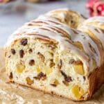 - Glaze and Serve: Pour the icing over the cooled stollen breads, slice, and enjoy your festive, fruit-laden treat!