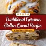 This traditional German Stollen recipe yields a rich, festive bread filled with dried fruits, almonds, and warm spices. Perfect for holiday celebrations, this bread is braided, baked to a golden brown, and topped with a sweet icing glaze for a decadent finish.