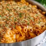 - Assemble and Bake: Preheat your oven to 350°F (175°C). Transfer the macaroni and cheese mixture into a baking dish. Evenly sprinkle the prepared panko breadcrumb topping over the pasta. Bake in the preheated oven for about 20 minutes until the topping is golden and crispy, and the cheese sauce is bubbling around the edges.