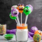 Can I use regular cake instead of mini donuts for this Halloween Cake Pops Recipe?Absolutely! You can crumble baked cake and mix it with frosting to shape into balls before dipping. However, using mini donuts saves time and adds a delicious chewiness without the extra steps of baking and shaping.