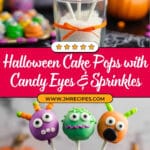 Celebrate Halloween with these festive Halloween Cake Pops, featuring mini donuts dipped in colorful candy melts and decorated with fun spooky details like candy eyeballs, sprinkles, and black decorating gel. Perfect for parties or a seasonal treat, these easy-to-make cake pops bring seasonal cheer with minimal fuss.