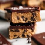 Protein Cookie Dough Bark is a delicious and nutritious no-bake snack that combines the irresistible taste of cookie dough with the goodness of high-protein ingredients. This vegan and grain-free treat is easy to make in just over 10 minutes of preparation plus chilling time, featuring a smooth blend of almond flour, protein powder, and SunButter, topped with a rich chocolate layer. Perfect for a satisfying snack or sweet treat, it requires no baking and keeps well refrigerated.