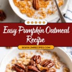 This Pumpkin Oatmeal recipe offers a cozy, nutritious breakfast option combining creamy oats with the rich flavors of pumpkin and warm spices. Perfectly sweetened with maple syrup and customizable with your choice of milk and toppings, this easy-to-make oatmeal is ideal for a comforting morning meal or a healthy snack.