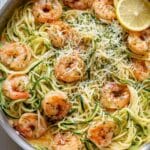 - Serve: Plate the shrimp and zoodles immediately and sprinkle with grated Parmesan cheese if desired for added richness and flavor.