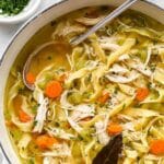 Freezing homemade chicken noodle soup works really well but I recommend leaving out the noodles when freezing. Freeze the broth and shredded chicken in zip-top freezer bags or containers, then cook fresh noodles when you’re ready to eat.