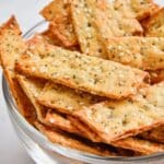 Homemade Everything but the Bagel Crackers are a delicious and crispy snack made from simple pantry ingredients. These savory crackers are flavored with classic Everything Bagel seasoning and baked to golden perfection, making them a perfect addition to charcuterie boards, snacks, or lunch plates.