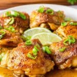 - Serve: Transfer chicken pieces to plates, drizzle the pan juices over the top for extra flavor, and garnish with chopped green onions and lime slices. Serve hot alongside your favorite side dishes and enjoy a bright, flavorful meal.