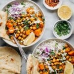 This Indian Chickpea Sweet Potato Stew is a hearty and wholesome vegan and gluten-free dish, packed with tender chickpeas, sweet potatoes, and vibrant Indian spices. Rich in flavor with aromatic mustard and cumin seeds, garam masala, and turmeric, this comforting stew is perfect for a nutritious meal. Served with fresh herbs, coconut yogurt, and your choice of rice or flatbread, it offers a cozy, satisfying experience that’s both healthy and delicious.