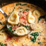 Reheat gently on the stove over low heat, stirring occasionally. Add extra broth or cream if the soup feels too thick. I avoid the microwave for reheating because it can make the cream curdle or the tortellini rubbery.