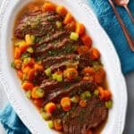 I usually keep garnishes simple so the brisket and veggies shine. Fresh parsley sprinkled on top adds a pop of color and fresh aroma. Sometimes I add a few thinly sliced scallions for a subtle oniony crunch. If I’m feeling fancy, a light drizzle of good quality olive oil just before serving gently enhances the richness.