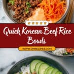Pair your Korean Beef Rice Bowls with a simple cucumber salad or some steamed greens like bok choy. For a crunchy, tangy side, I love serving extra kimchi or pickled radishes on the side — they’re perfect palate cleansers.