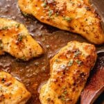 - Return Chicken to Skillet: Place the seared chicken breasts back into the skillet along with any accumulated juices. Spoon some of the sauce over the chicken to coat.