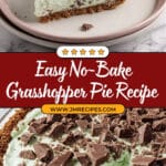 Grasshopper Pie is a deliciously creamy and minty no-bake dessert featuring a smooth cream cheese and sweetened condensed milk filling mixed with chocolate-covered mint cookies. Set in a chocolate crumb crust and finished with whipped topping and additional cookie garnish, this refreshing pie is perfect for any occasion and can be made ahead and frozen overnight.