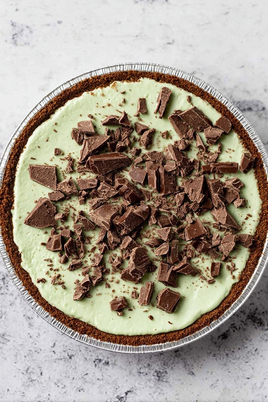 For special occasions, I’ve spooned the filling into individual mini chocolate tart shells for bite-sized treats—super cute and great for parties. Or layered the pie filling in clear parfait glasses with crumbled cookies and whipped cream for a trendy grasshopper trifle twist that everyone compliments.