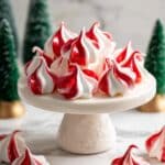 Delightfully light and airy Minty Peppermint Meringues infused with a refreshing peppermint flavor and visually accented with festive red stripes. These crisp and sweet meringue cookies are perfect for holiday celebrations or any occasion that calls for a delicate treat.