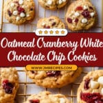 These Oatmeal Cranberry White Chocolate Chip Cookies are soft and chewy, combining the hearty texture of rolled oats with the tart sweetness of dried cranberries and creamy white chocolate chips. Perfect for a comforting snack or a delightful dessert.
