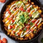 One Pot Chicken BBQ Rice is a deliciously easy and flavorful meal that combines tender chicken breast pieces with savory BBQ sauce, hearty brown rice, and a mix of vegetables all cooked together in a single skillet. Topped with melted cheddar cheese and optional fresh toppings like avocado and cilantro, this recipe makes a perfect quick weeknight dinner that’s both comforting and satisfying.