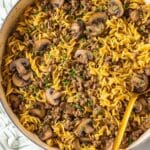 This One-Pot Ground Beef Stroganoff is a quick and easy comfort food classic made with lean ground beef, mushrooms, and wide egg noodles all cooked together in a single pan. The creamy sauce features cream cheese, sour cream, and Dijon mustard, creating a rich and satisfying dish perfect for a hearty weeknight dinner ready in about 35 minutes.