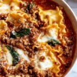 This One Pot Lasagna Soup delivers all the cozy, comforting flavors of traditional lasagna in a hearty, easy-to-make soup. Combining lean ground beef, Italian sausage, tomato sauce, broken lasagna noodles, and fresh spinach, this dish is perfect for a warming weeknight meal that the whole family will love. Topped with a creamy mixture of ricotta and mozzarella and a sprinkle of Parmesan, it offers a rich and satisfying experience without the fuss of layered baking.