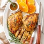 This Orange Glazed Chicken recipe features juicy bone-in chicken breasts coated in a flavorful blend of spices and baked to perfection, then basted with a sweet and tangy honey orange glaze. Infused with fresh rosemary and thyme, the dish combines smoky paprika and chili powder with a zesty citrus glaze, making it a delightful and aromatic main course perfect for gatherings or a cozy dinner.