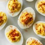 Honestly, I don’t recommend freezing deviled eggs—once thawed, the texture of the filling can become watery and unpleasant. I’ve tried it before and preferred to make fresh each time for that perfect creamy consistency.