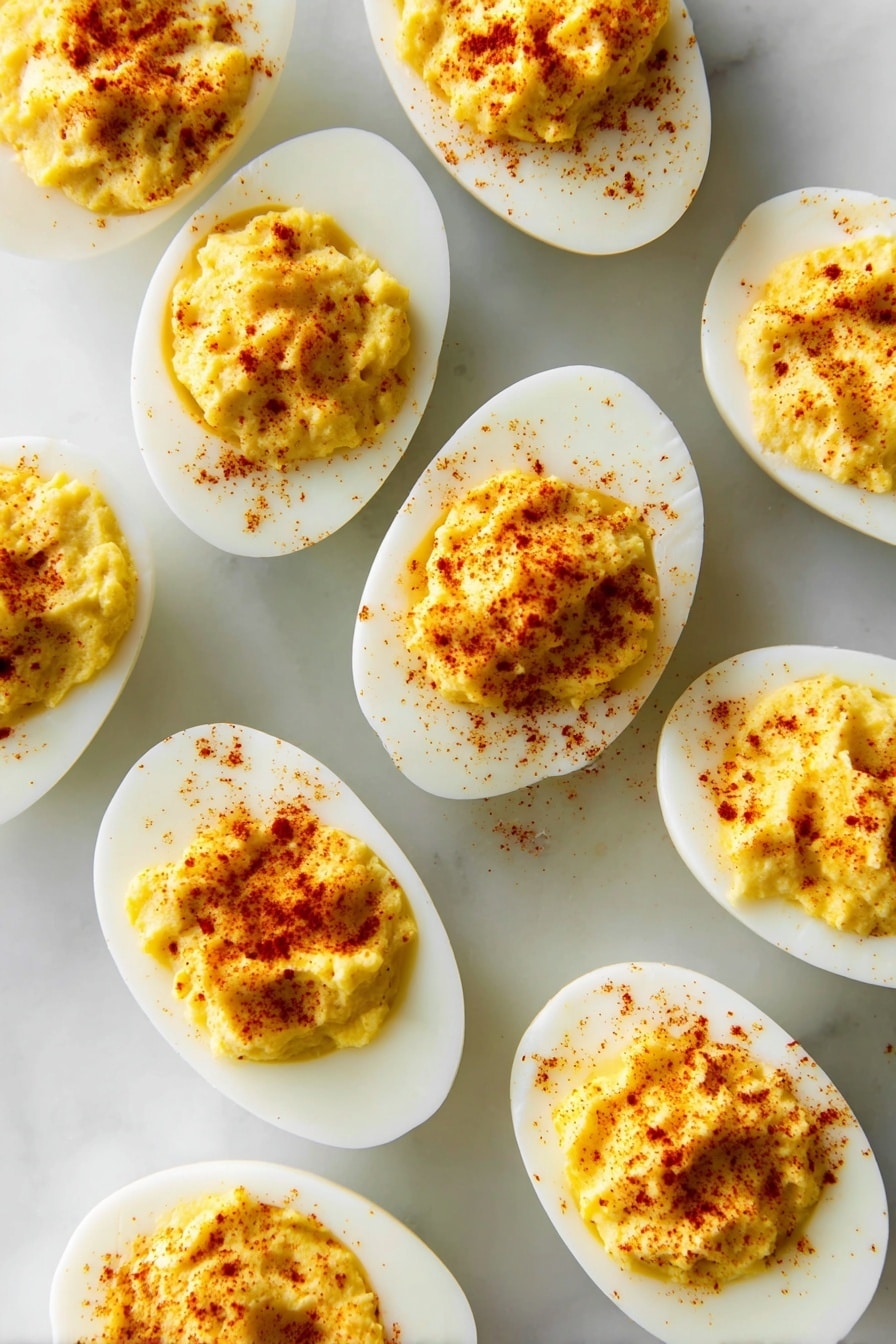 For special occasions, I sometimes arrange the deviled eggs on a platter lined with fresh lettuce leaves for a pop of green. Using a piping bag for a neat filling swirl ups the presentation instantly. You could also top each egg with a tiny edible flower for an elegant touch at showers or brunches.