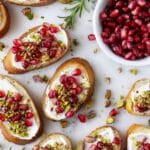- Add toppings: Carefully top each crostini with a generous amount of fresh pomegranate arils and a sprinkle of chopped pistachios, balancing the colors and flavors.