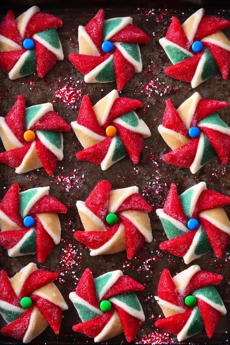 - Decorate: Press one colorful M&M candy firmly into the center of each pinwheel, covering the folded points and adding a festive pop of color.